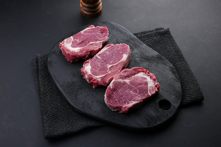 قطعية الريب آي (Ribeye) من لحم العجل تُعتبر من أرقى وأشهى القطع، وهي تأتي من الجزء العلوي من الضلع (عادة بين الضلع السادس والثاني عشر). تتميّز